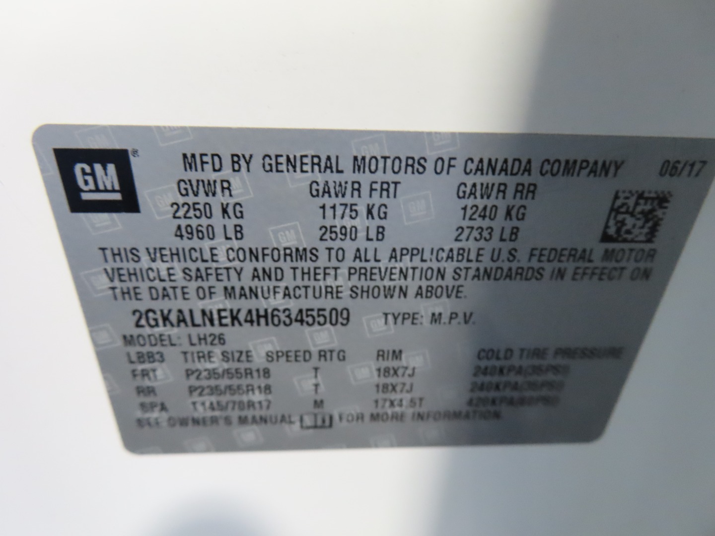 VIN #: 2GKALNEK4H6345509