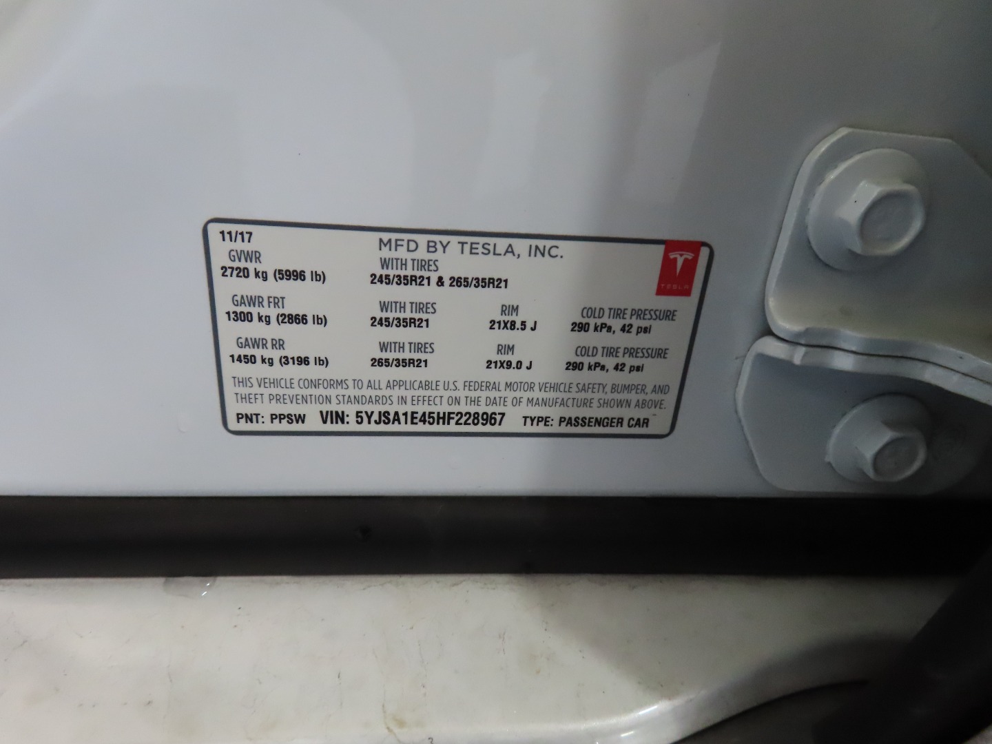 • VIN #: 5YJSA1E45HF228967