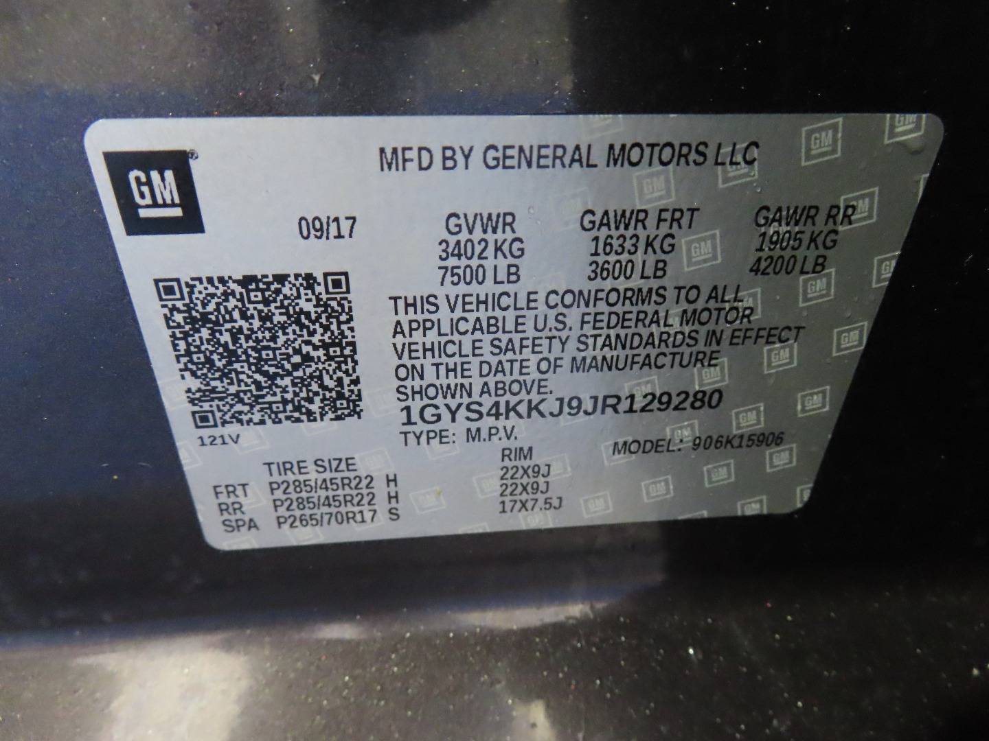 • VIN #: 1GYS4KKJ9JR129280