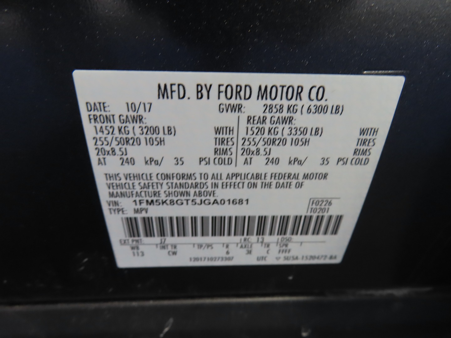 • VIN #: 1FM5K8GT5JGA01681