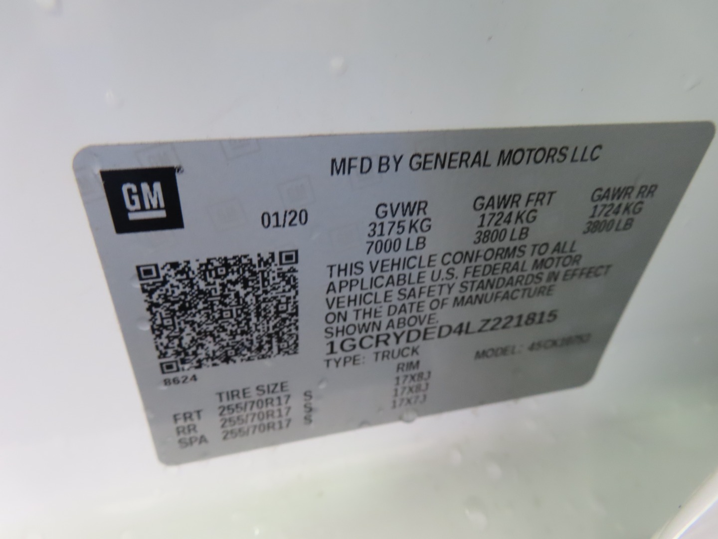 • VIN #: 1GCRYDED4LZ221815