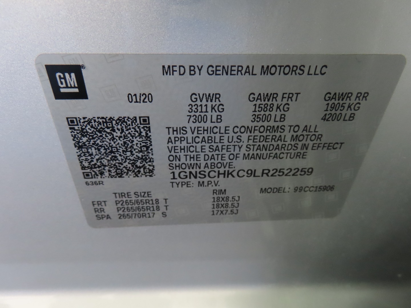 VIN #: 1GNSCHKC9LR252259