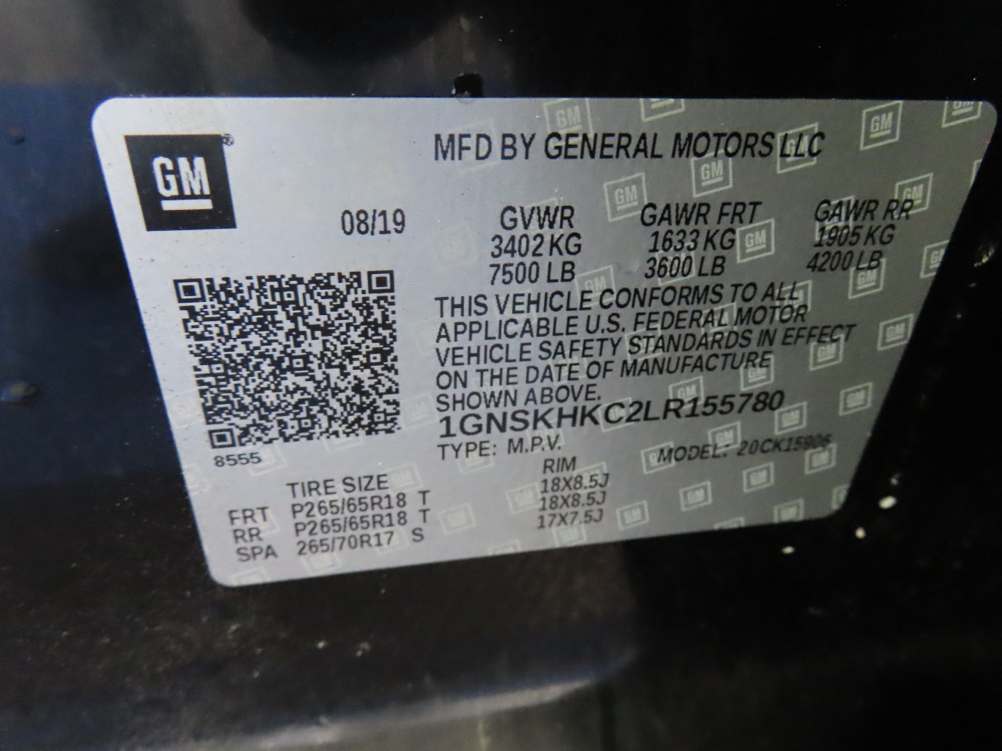 VIN #: 1GNSKHKC2LR155780