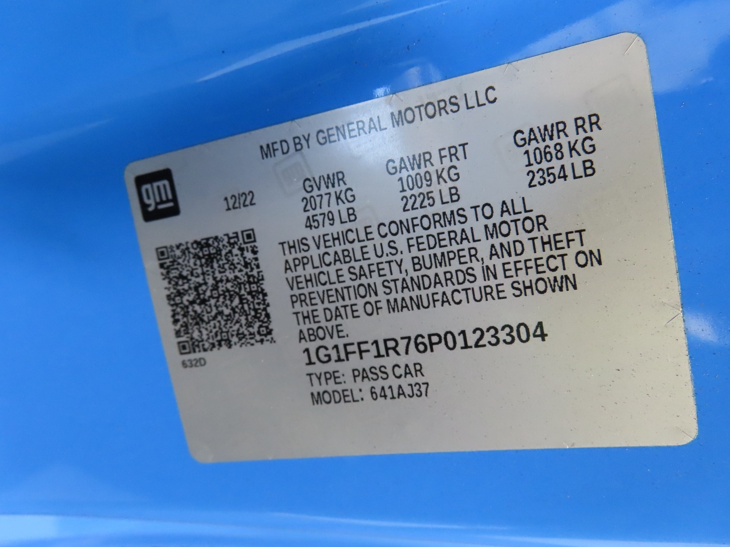VIN #: 1G1FF1R76P0123304
