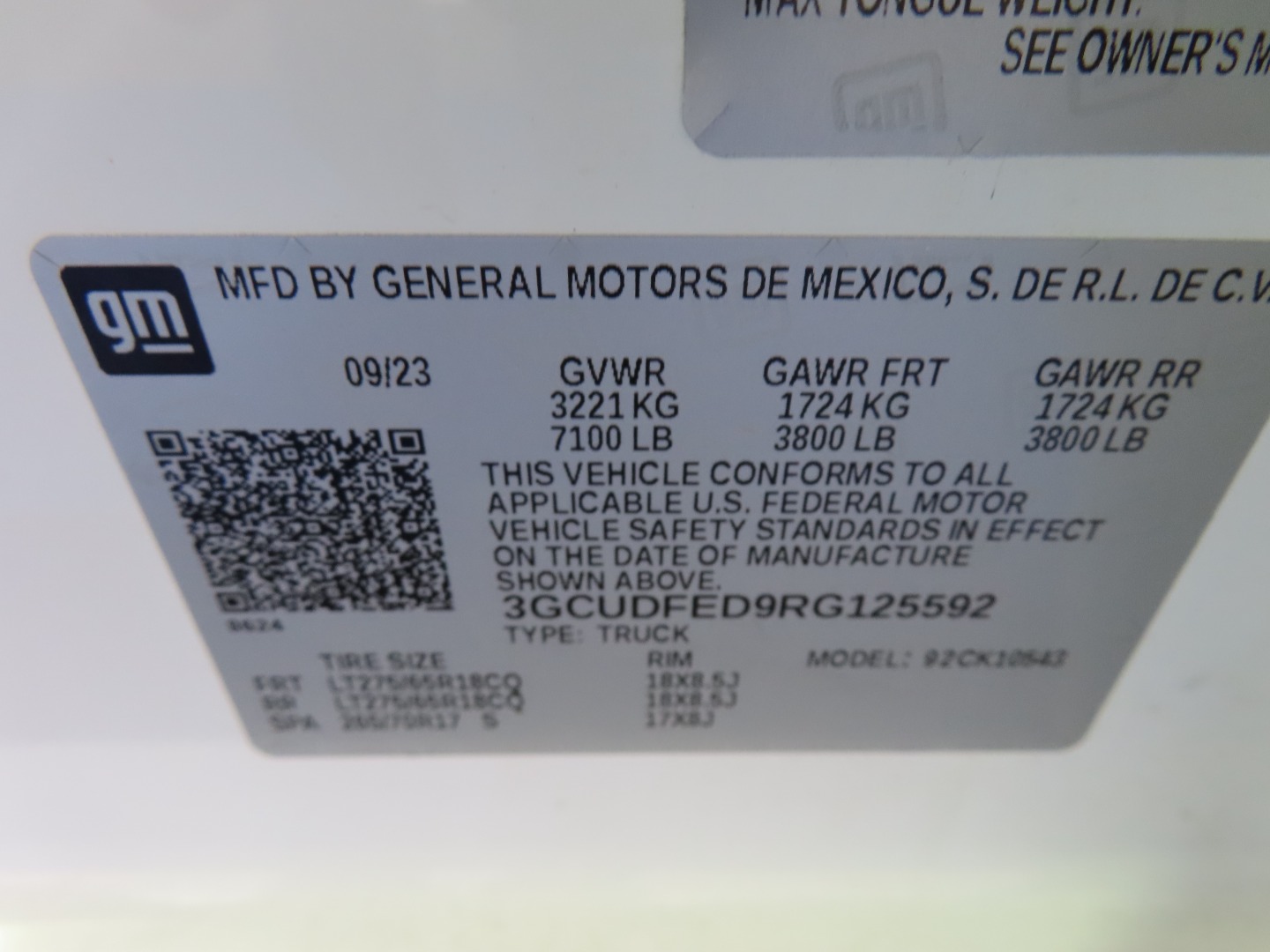 • VIN #: 3GCUDFED9RG125592