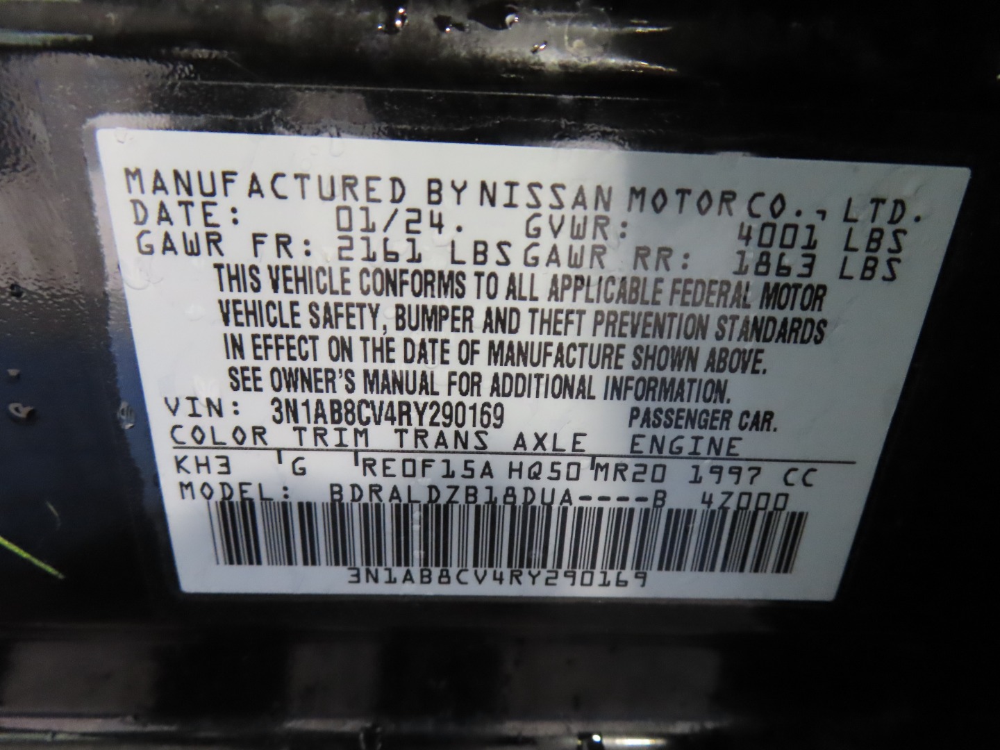 • VIN #: 3N1AB8CV4RY290169