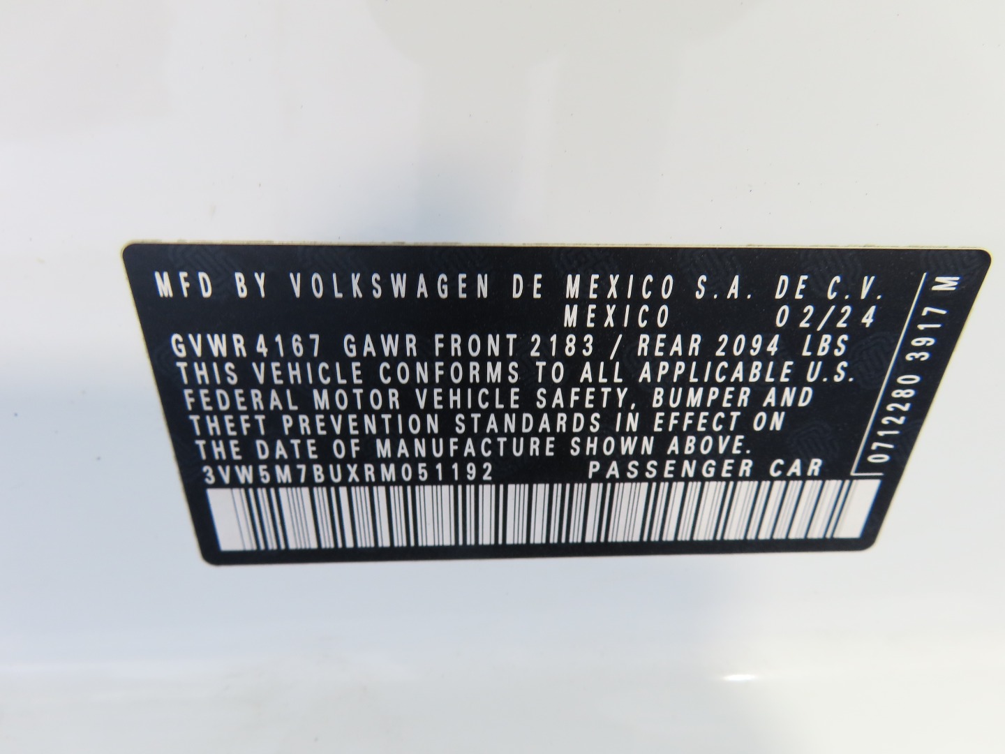VIN #: 3VW5M7BUXRM051192